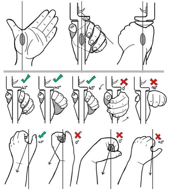 Der richtige Griff der Bogenhand am Griffstück des Bogens,