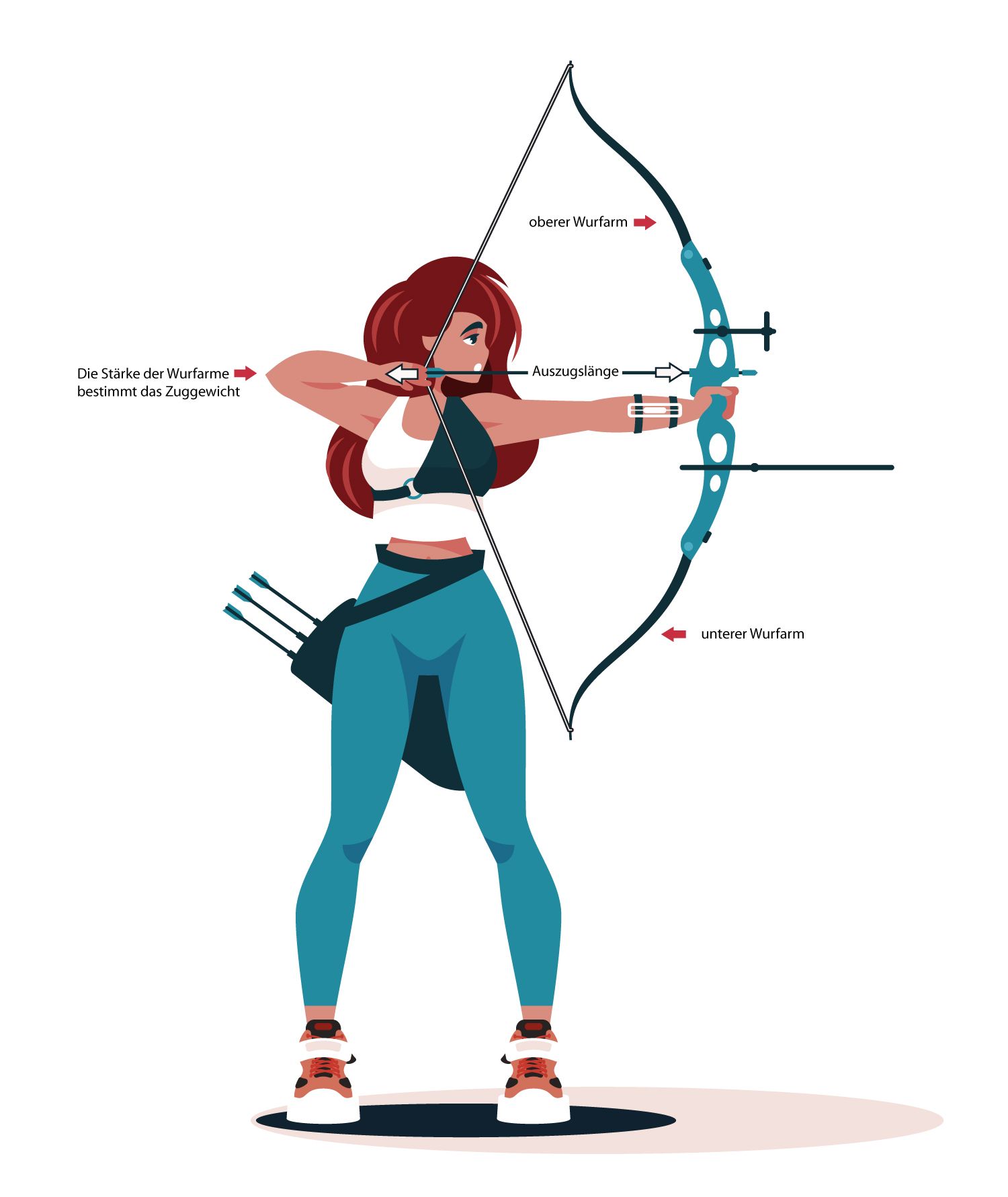 Die Bogenlänge richtet sich nach der Körpergröße des Schützen und sollte eher länger,